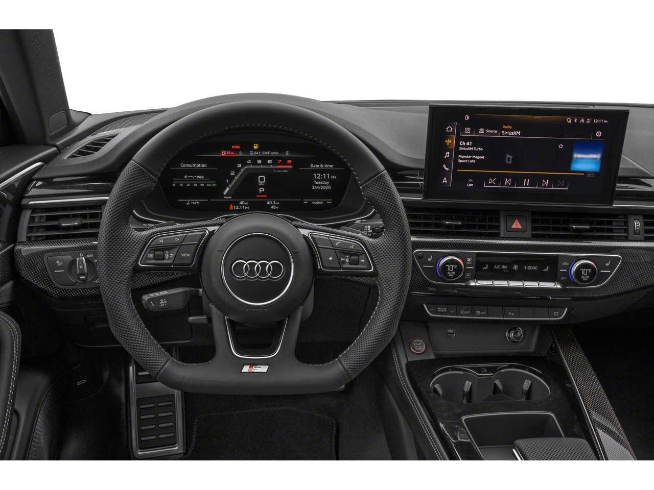 2 Rear USB Charging Ports, ABS brakes, Adaptive Cruise Control, Alarm System w/Motion Sensors, Alloy wheels, Audi Active Lane Assist, Audi Advanced Key, Audi Connect PLUS, Audi Phone Box, Audi Side Assist w/Pre Sense Rear, Audi Sport Interior Package, Audi Virtual Cockpit Plus, Auto-Dimming Exterior Mirrors w/Memory, Bang & Olufsen Sound System w/3D Sound, Black Audi Rings & Badges, Black Exterior Mirror Housings & Exhaust Tips, Black Exterior Trim, Black Optic Plus Package, Black Side Sill Blades, Compass, Convenience Package, Driver's Seat Memory, Electronic Stability Control, Front dual zone A/C, Hands-On Detection Steering Wheel, Heated door mirrors, Heated front seats, Heated Steering Wheel, Illuminated entry, Leatherette Covered Center Console & Door Armrests, Low tire pressure warning, MMI Navigation Plus, Navigation Package, Parking System Plus (Front/Rear Acoustic Sensors), Power Folding Exterior Mirrors, Power moonroof, Premium Plus Package, Remote keyless entry, SiriusXM w/360L, Top View Camera System, Traction control, Traffic Jam Assist, Wheels: 19 5-V-Spoke-Star Design.