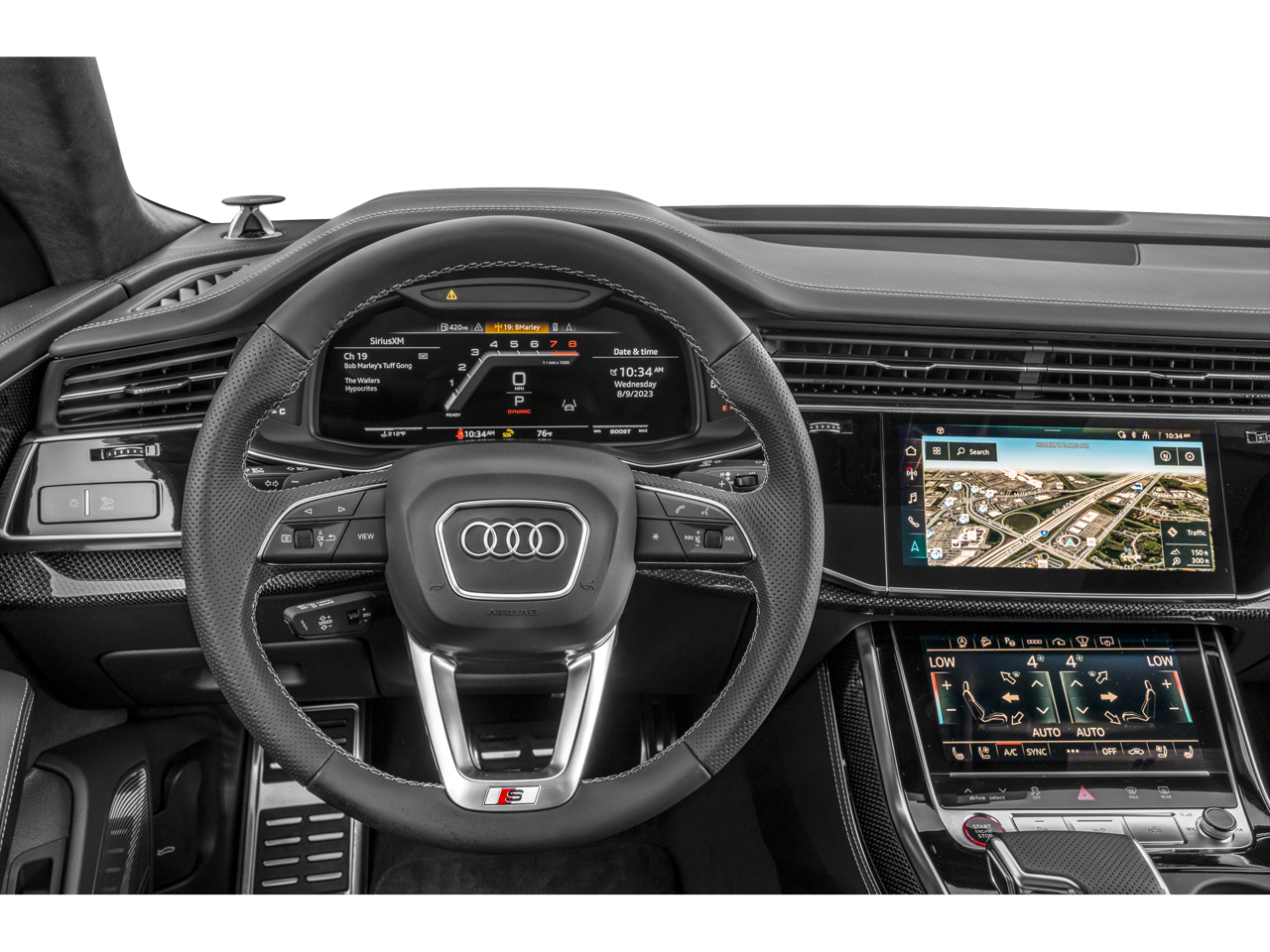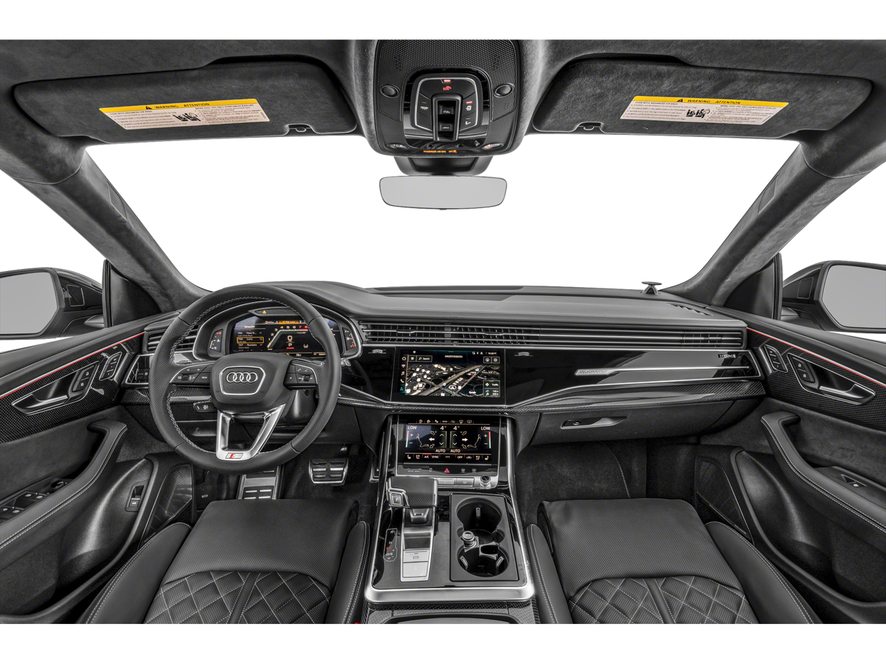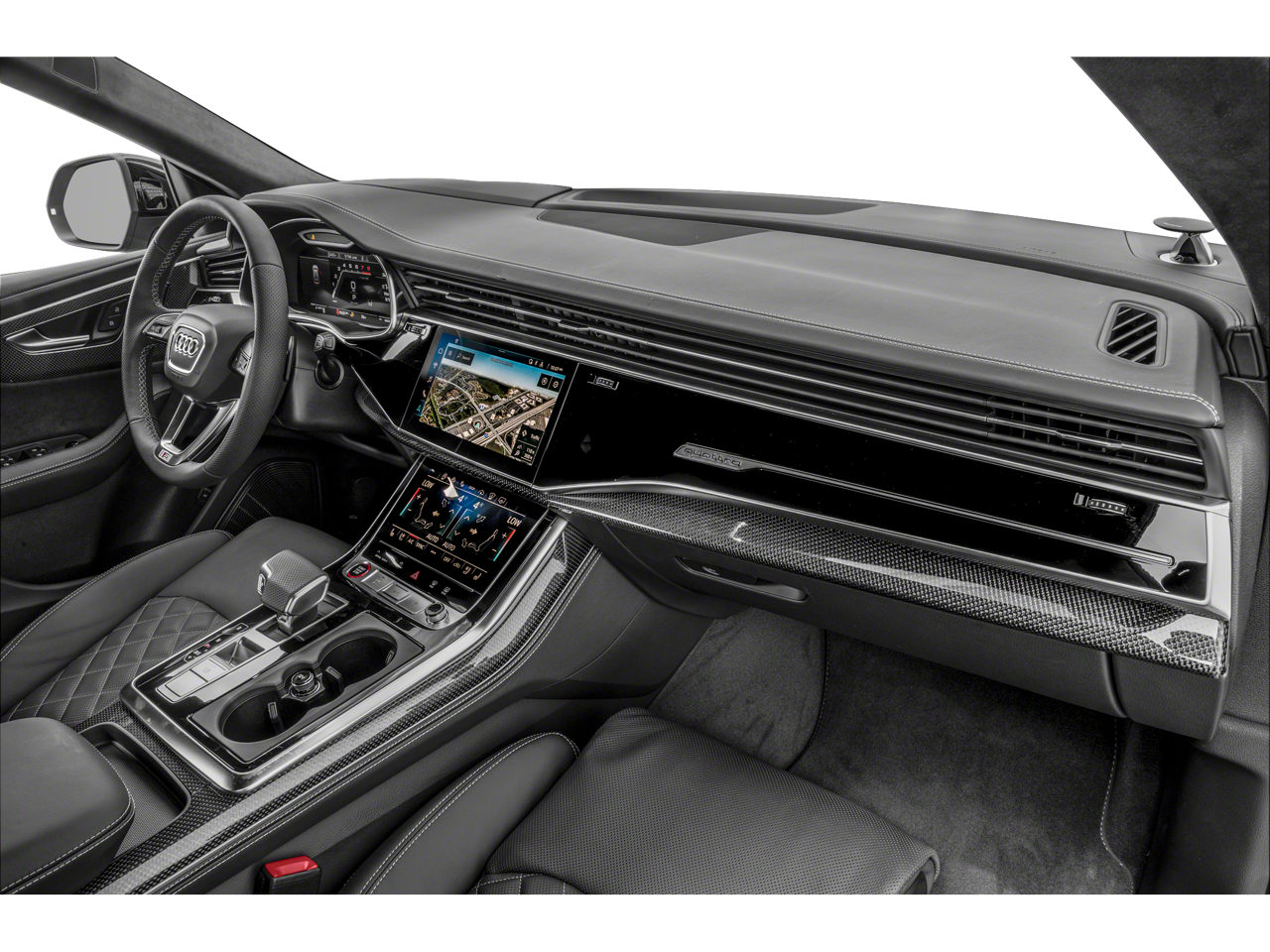 Alu Touch-Sensitive Interior Buttons, Bang & Olufsen 3D Advanced Sound System, Black Dinamica Headliner, Black Roof Rails, Carbon Fiber Door Inlays & Rear Bumper Trim, Carbon Fiber Exterior Mirror Housings, Carbon Optic Package, Contour/Ambient LED Interior Lighting Package, Driver & Passenger Front Seats w/Ventilation, Dual-Pane Acoustic Glass, Executive Package, Extended Leather Package, Front Seat Massage Functions, Head-Up Display, Heated Rear Seats, High-Gloss Black Exterior Elements, Intersection Assist, Power Rear Side Window Sunshades, Power Soft-Closing Doors, Prestige Package, Remote Park Assist Plus, SQ8 Luxury Package, Traffic Sign Recognition, Wheels: 22 5-Y-Spoke Design Graphite Gray Finish.