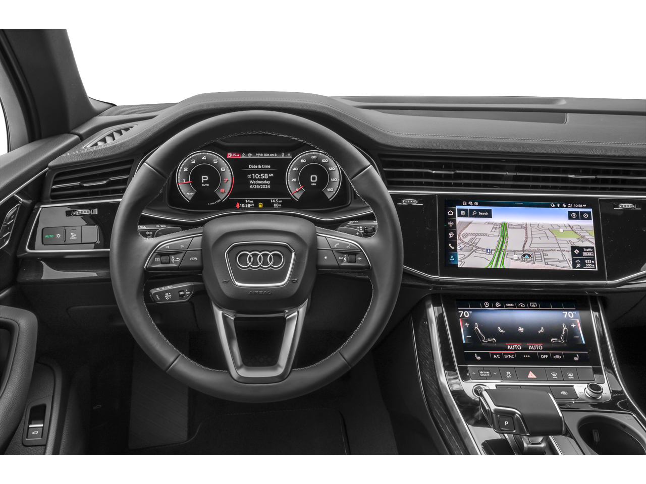 ABS brakes, Active Cruise Control, Alloy wheels, Anthracite Gray Audi Rings, Audi Beam Rings, Audi Guard Protection Kit, Bang & Olufsen Premium Sound System with 3D Sound, Black Door Blades, Black Exterior Trim, Black Grille, Black Roof Rails, Black Window Surrounds, Compass, Convenience Plus Package, Dark Chrome Exhaust Tips, Electronic Stability Control, Front dual zone A/C, Heated door mirrors, Heated Front Bucket Seats, Heated front seats, Heated Steering Wheel, Illuminated entry, LED Interior Lighting Package Plus, Low tire pressure warning, Navigation System, Power Liftgate, Remote keyless entry, Top View Camera System, Traction control, Traffic Sign Recognition, Wheels: 20 5-Double-Spoke Bicolor Finish.